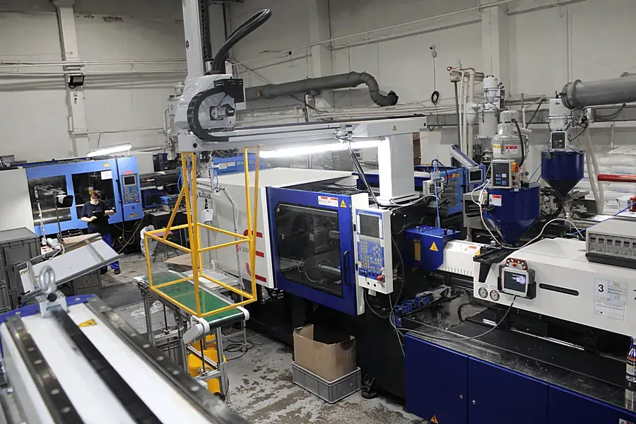 На нашем производстве применяется традиционное литье под давлением на универсальных литьевых машинах- термопластавтоматах (ТПА) с червячной (шнековой) пластикацией и используется для изготовления деталей толщиной от 1,0 до 20,0 мм. Действующий парк ТПА составляет 22 единиц с усилием смыкания от 600кН до 4700кН. Мы можем изготавливать детали весом меньше грамма и до 2600 грамм. 17 ТПА роботизированы (Star, Wittmann, Hilectro, Alpharobot), 9 оснащены по принципу “closed system” (IN=сырье, OUT=готовая продукция)